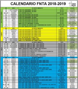 Ya tenemos el calendario de las distintas competicones FNTA y RFETA 2018-2019. Ya podéis ir haciendo huecos en la agenda y ganando puntos con la familia porque los fines de semana están copados de competiciones.